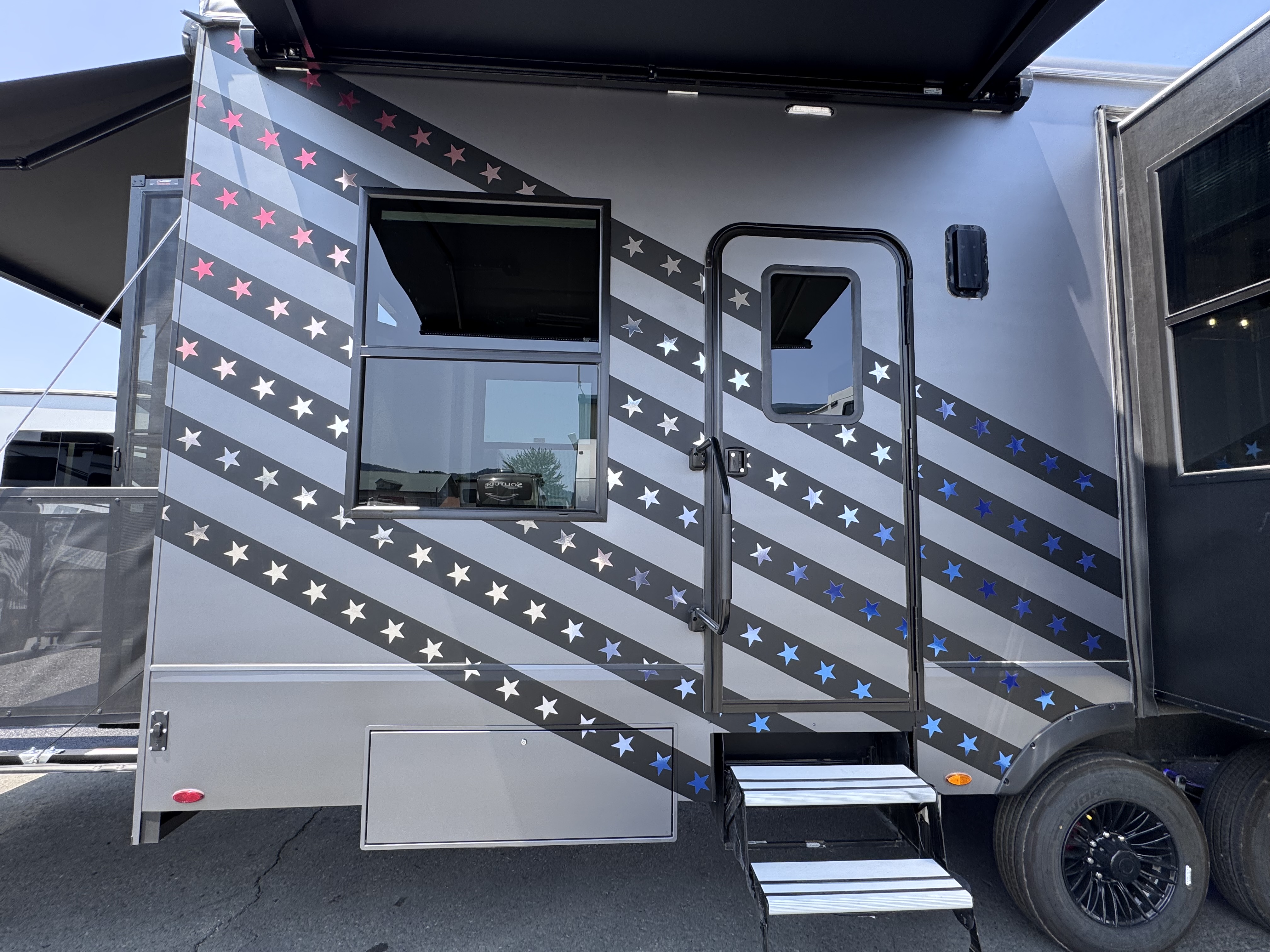 - Lippert side entry patio system w/ electric awning and patio step