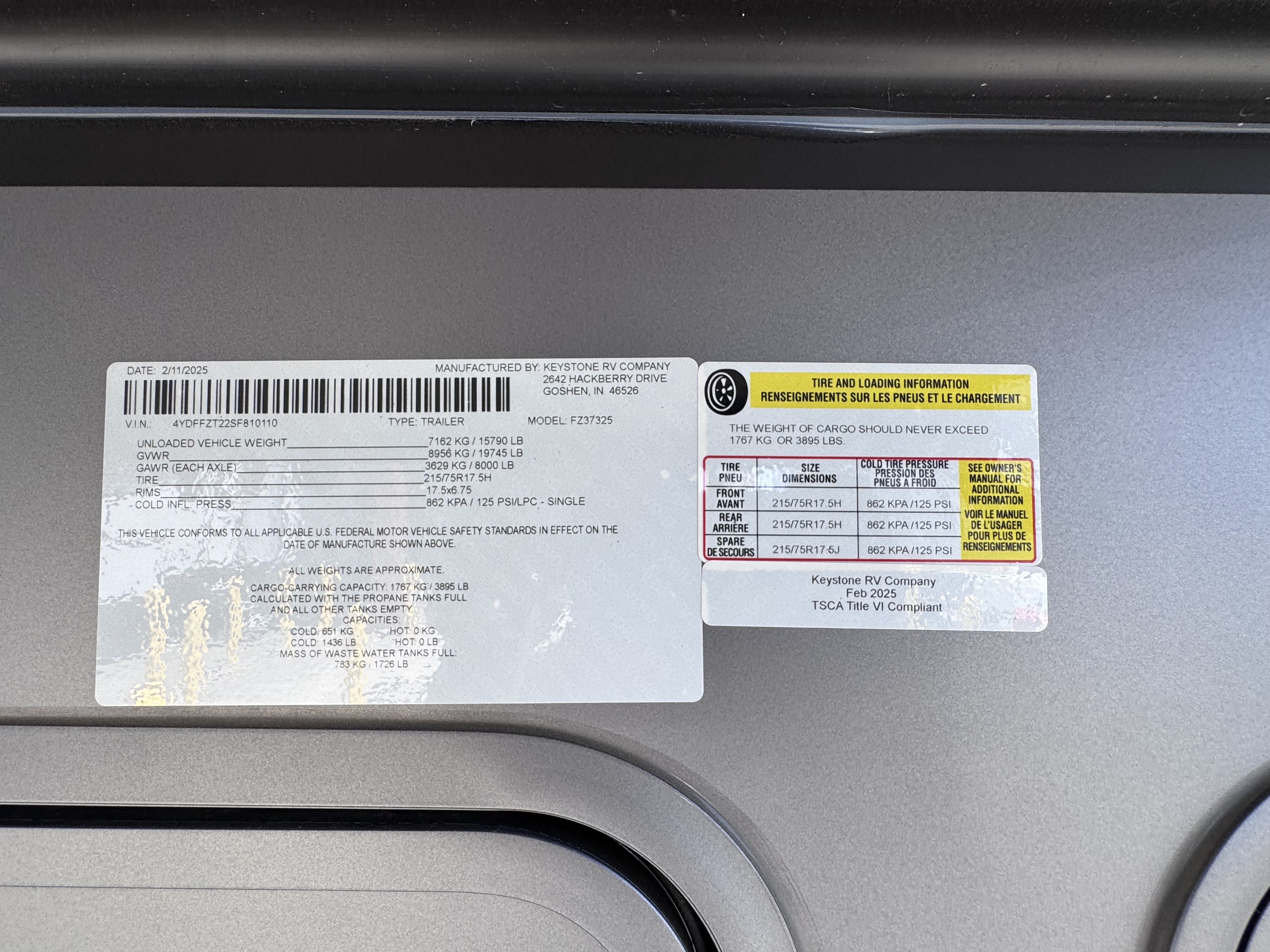 - 173 gal. fresh, 104 gal. gray, 52/104 gal. black