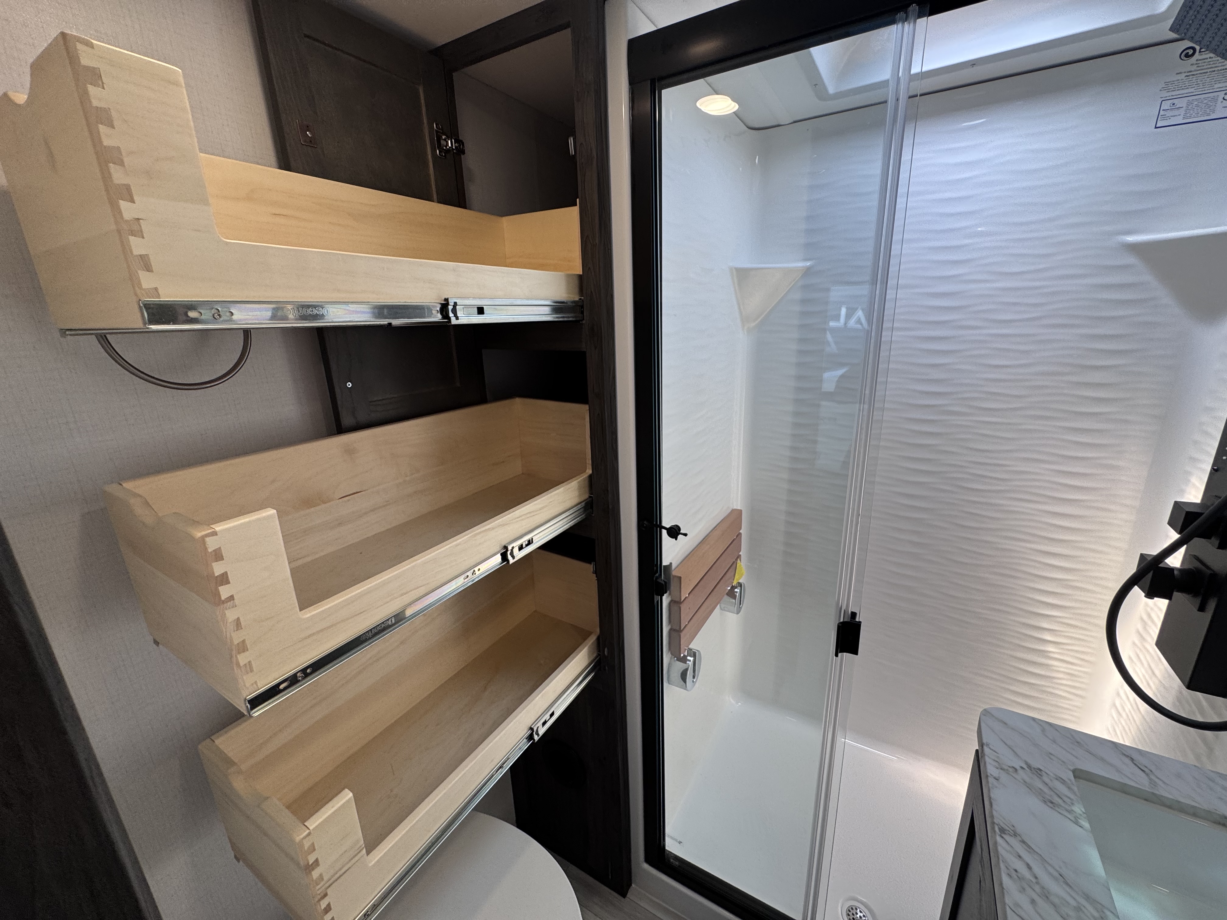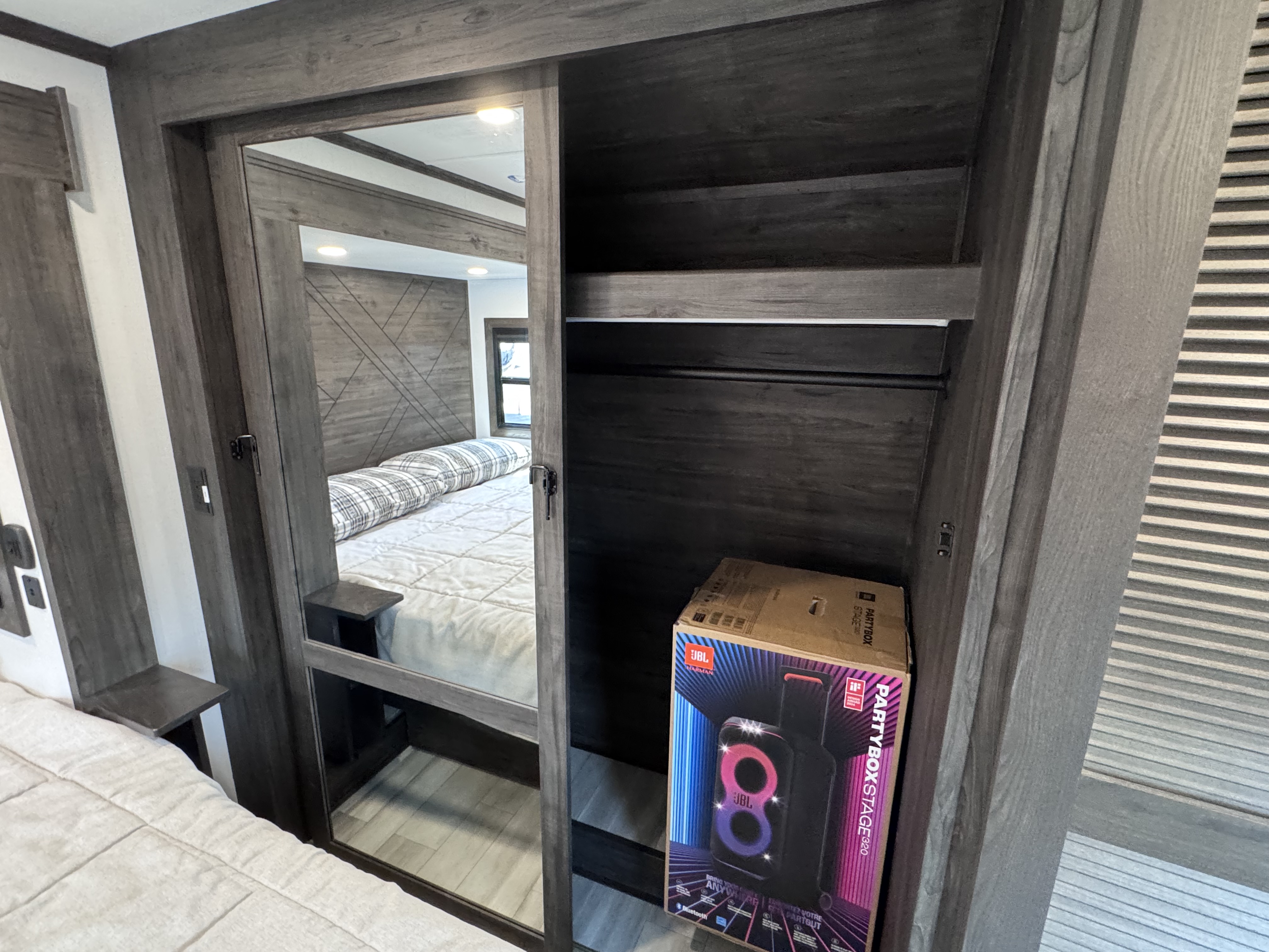 - 105 cubic foot pass through storage with LED lighting