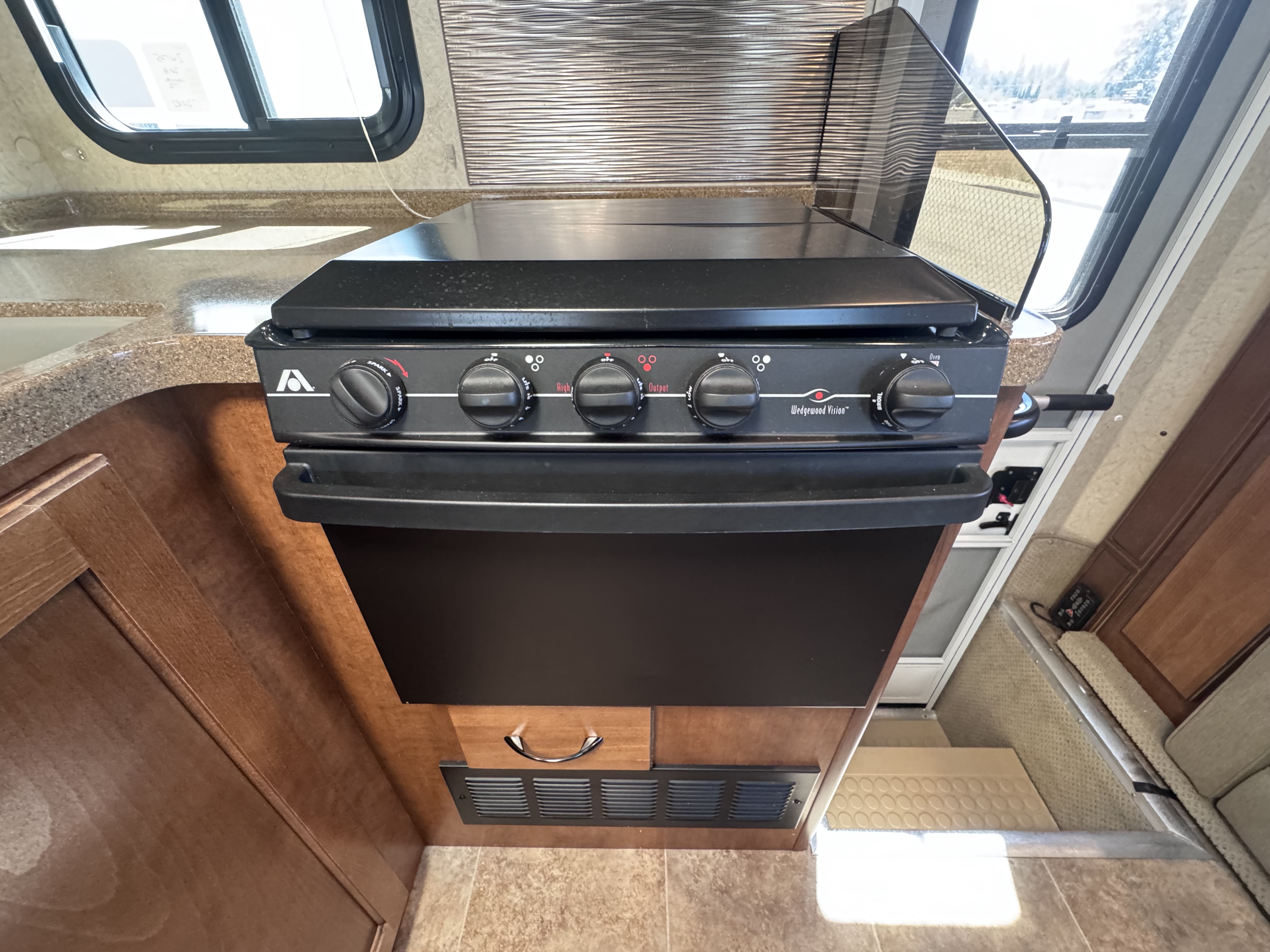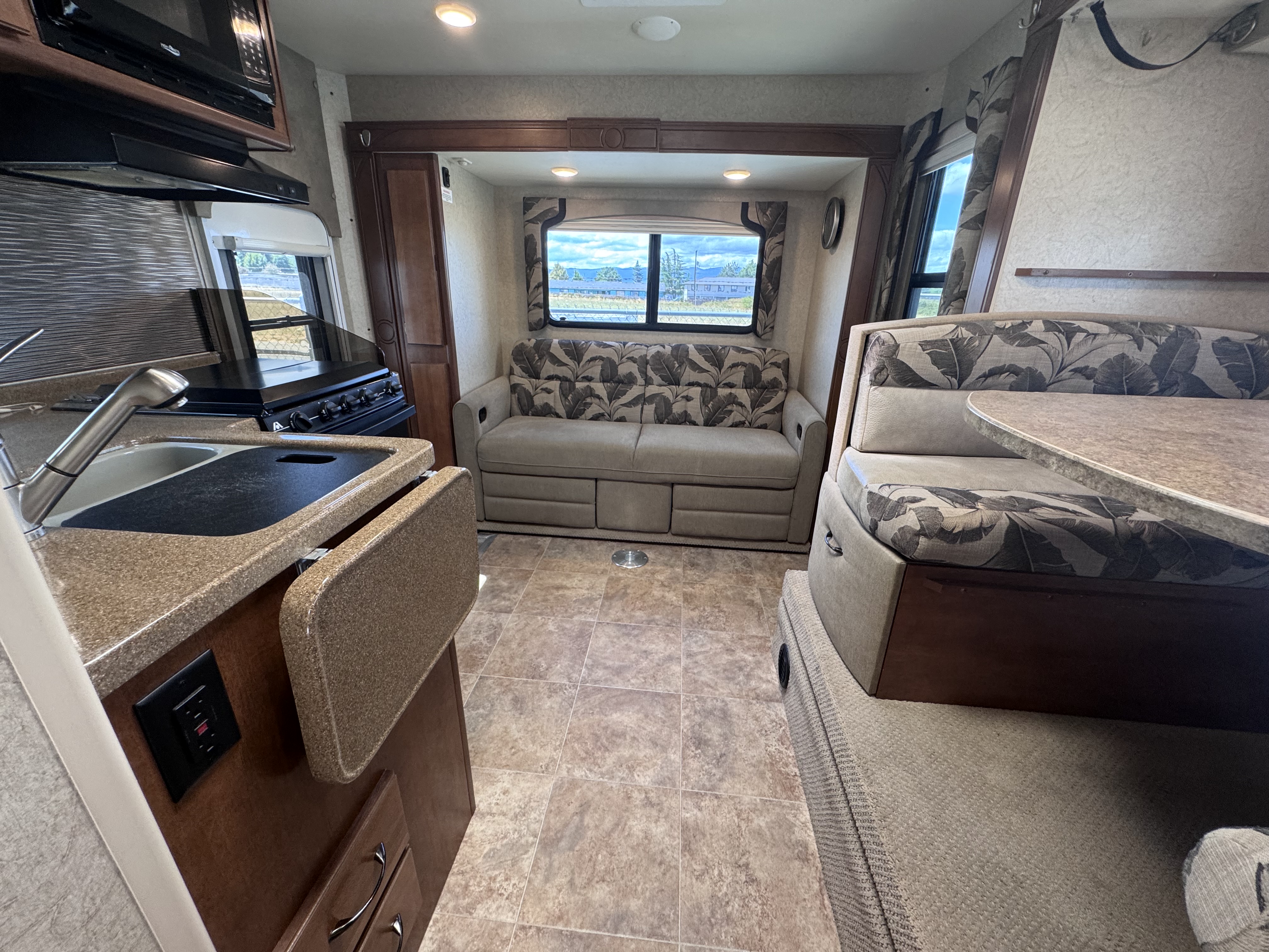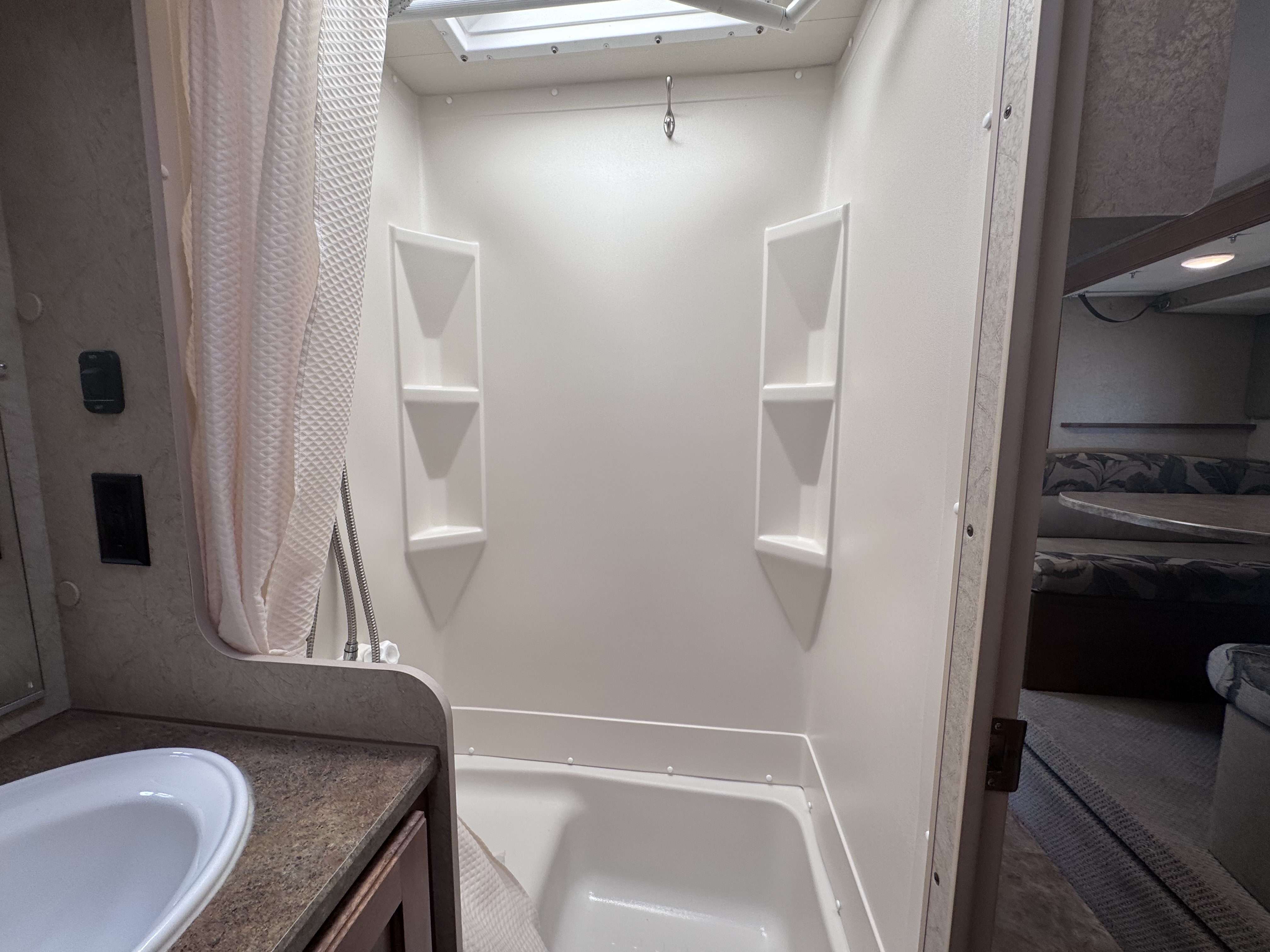 The new 1172 features giant windows and skylights that bathe the interior making it light and airy. There's the "Super Slide" dinette opposite the dry bath and a galley with flip-up counter extensions at both ends.