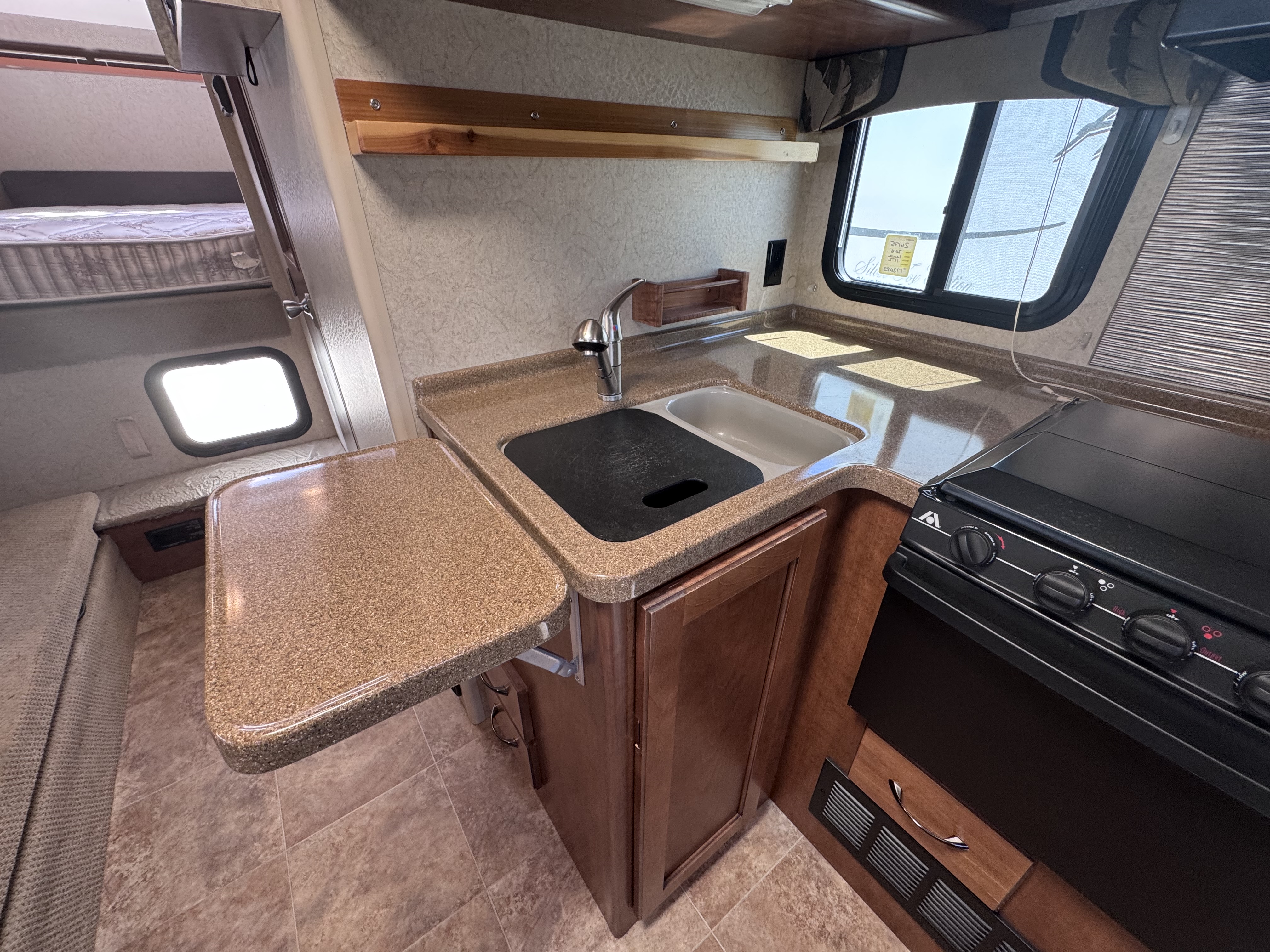 The big news comes as the rear wall slides out with a sofa incliner for your relaxation. With both slides open the space is cavernous. The 1172 is the definition of the ultimate flagship truck camper. Your wait is over.