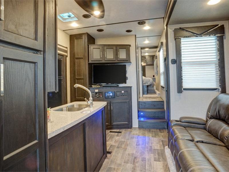 The affordable way to camp in style. Whether going to the mountains, the beach, the race track or anywhere in between, Impact will take you there in style. Hauling precious cargo? Secure it with the Fuzion 5K Inter-Lock System, the toughest tie down system available. Just going to relax for the weekend? Take a nap under your LED lighted awning or unwind in your comfortable recliners. Looking for a King Bed? Impact has it. Our exclusive king bed "Glide-A-Bed" system is available in all Impact fifth wheels.