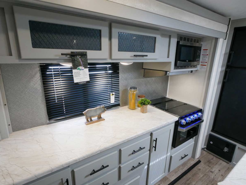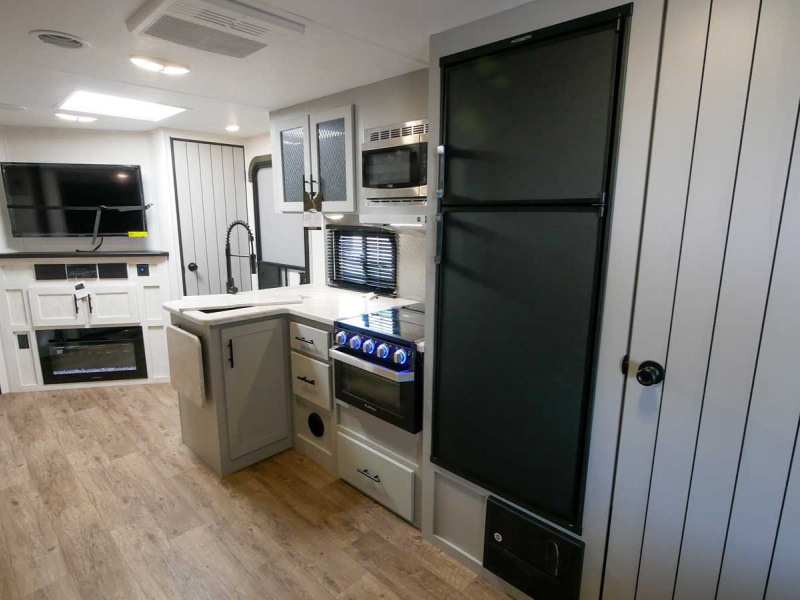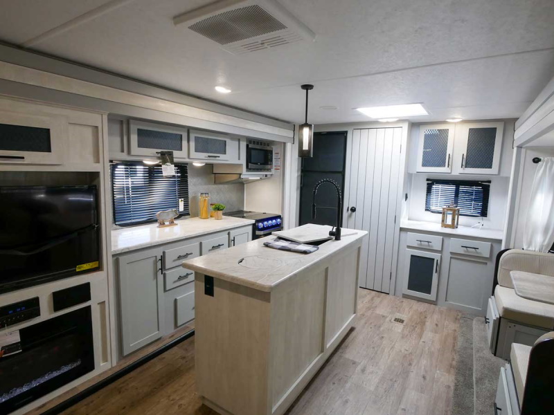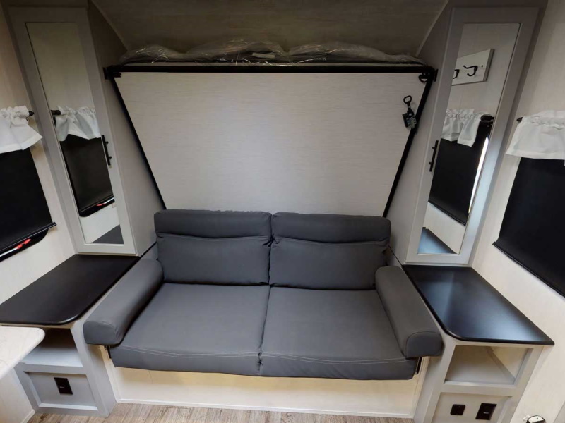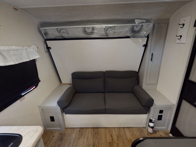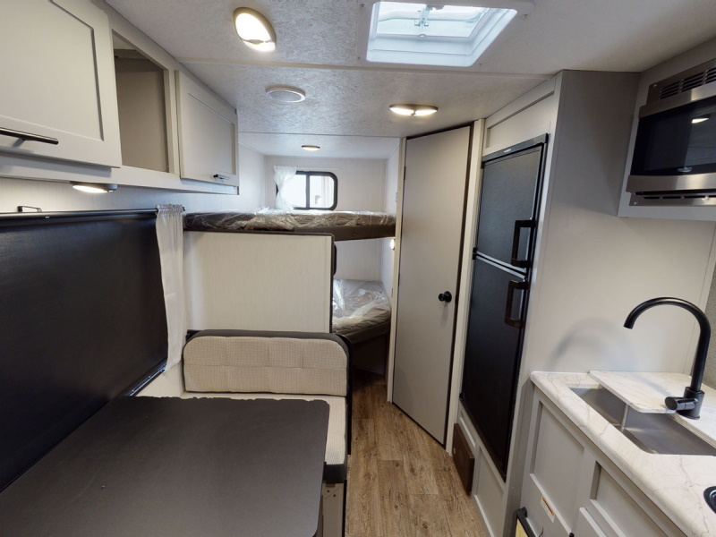 Do you camp with kids but have a smaller tow vehicle, the 17DB Vibe has it all. With double over double bunks, optional outside kitchen, heated and enclosed under belly, tons of storage and sleeping capacity and loaded with amenities!