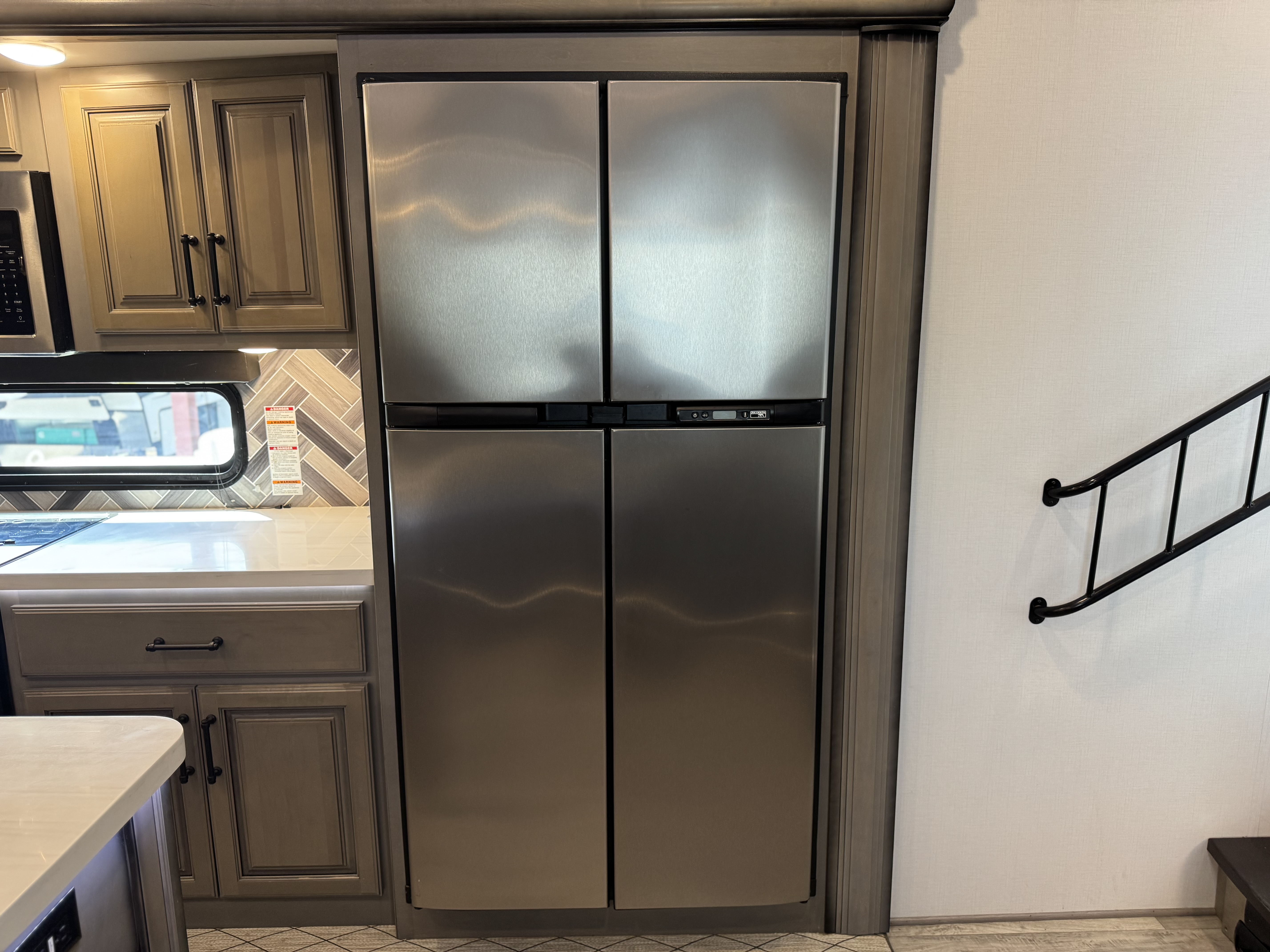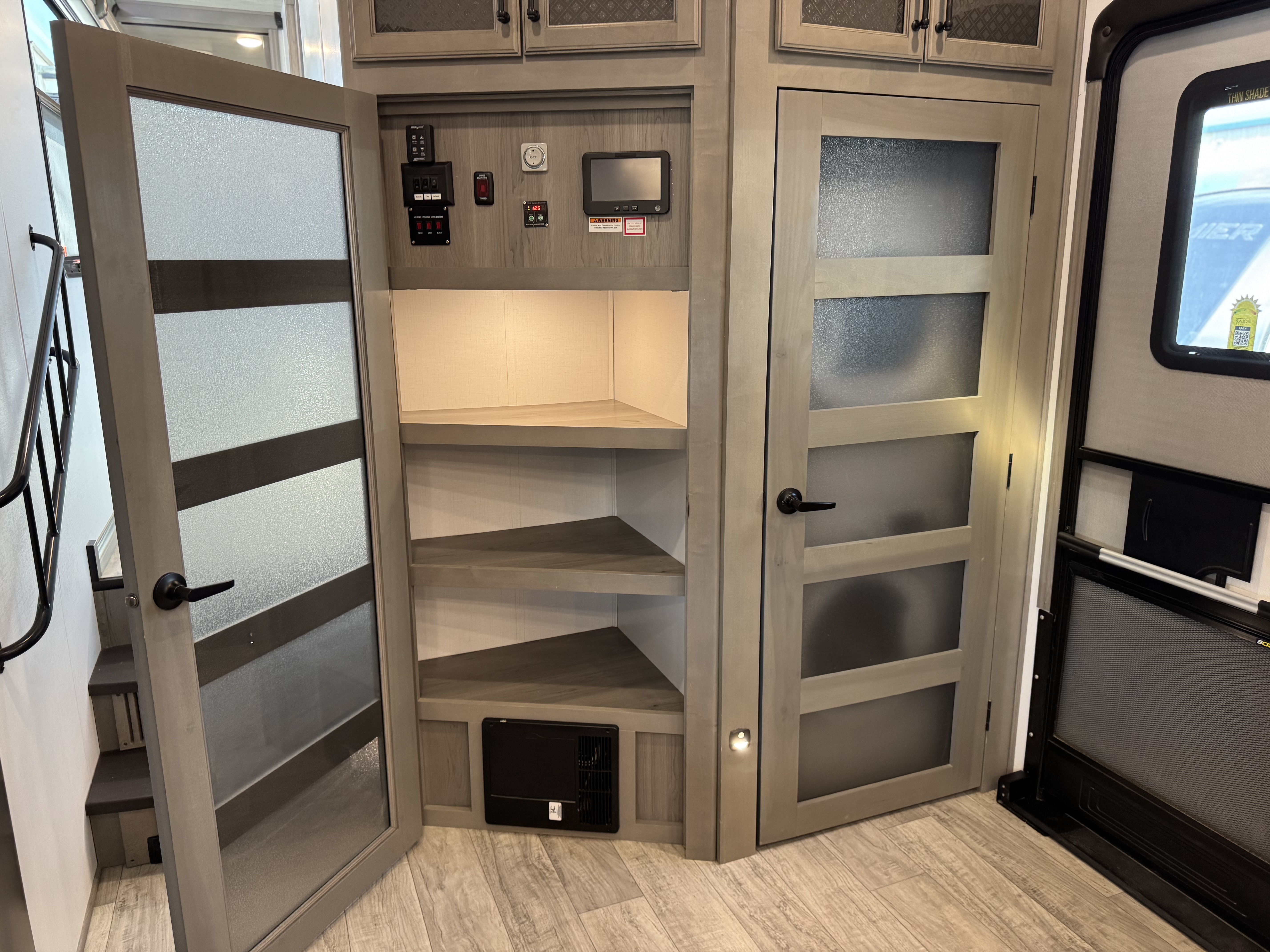 - Large pass through storage w/ oversized slam latch door