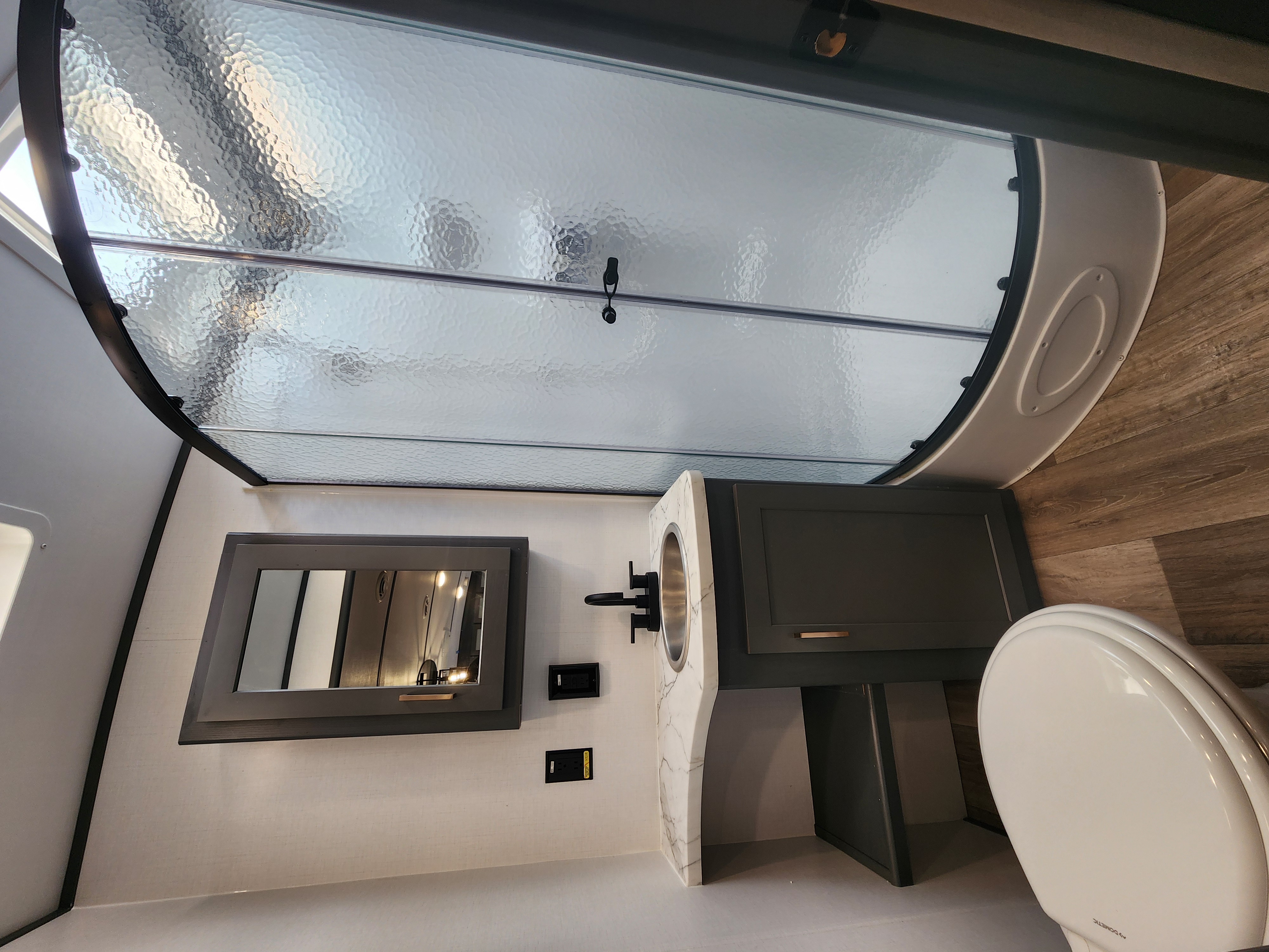 - Outside hot/cold shower w/ showerhead & black tank flush
