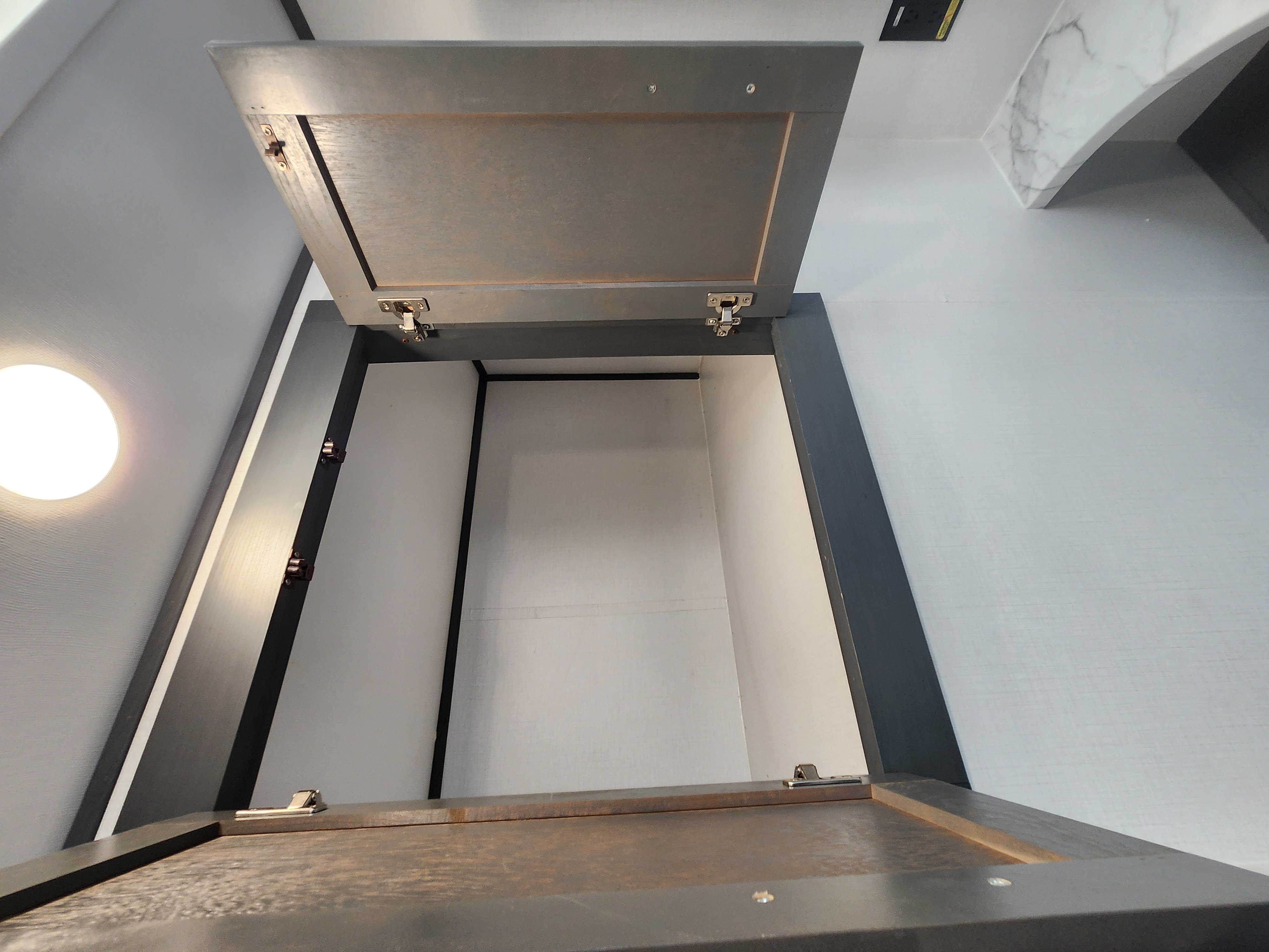 - Midnight Monterey stained hardwood cabinet doors & hidden hinges