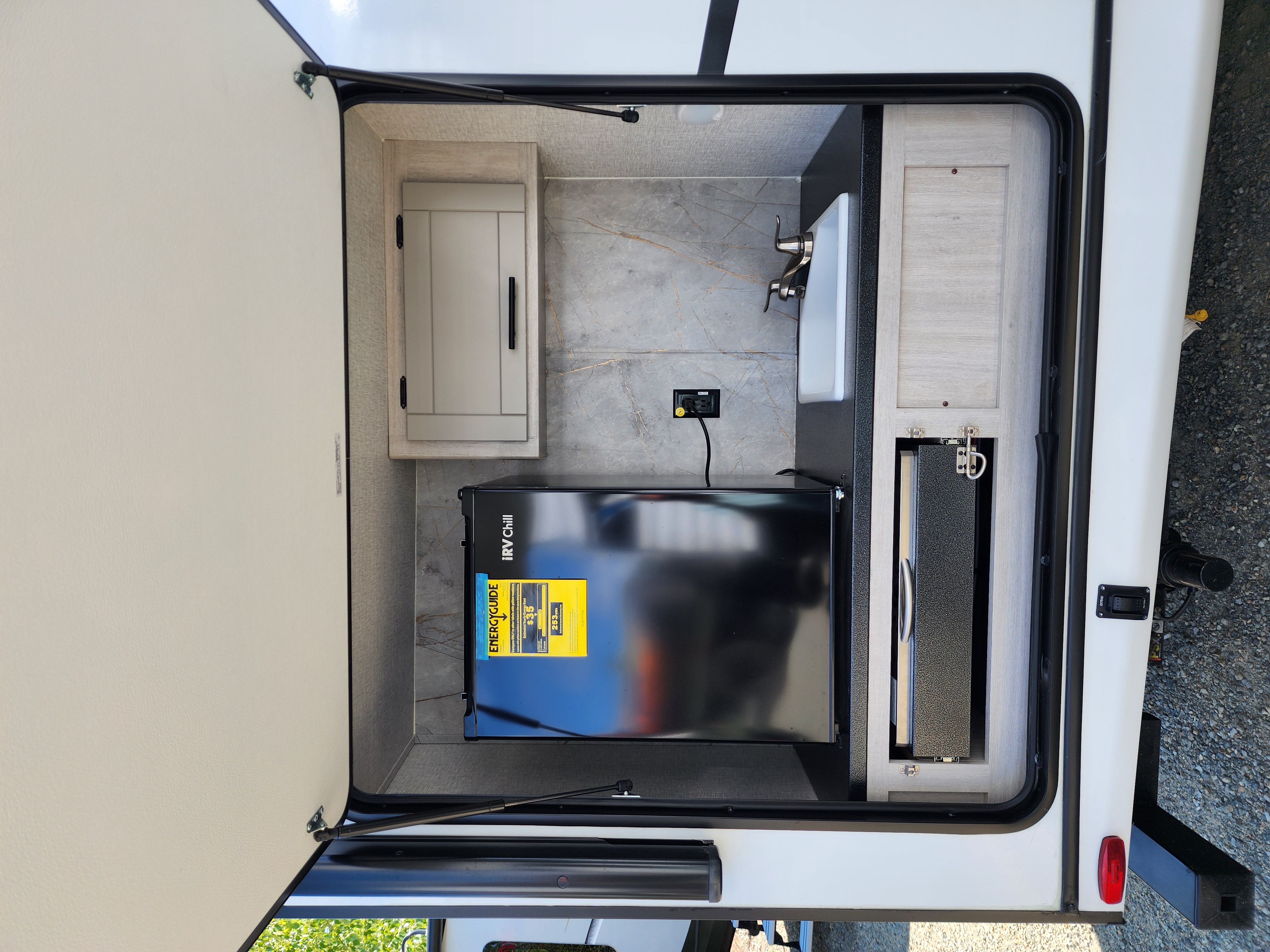 Includes exterior fridge, sink, and cooktop—ready for tailgating, grilling, or camp-style meals. -