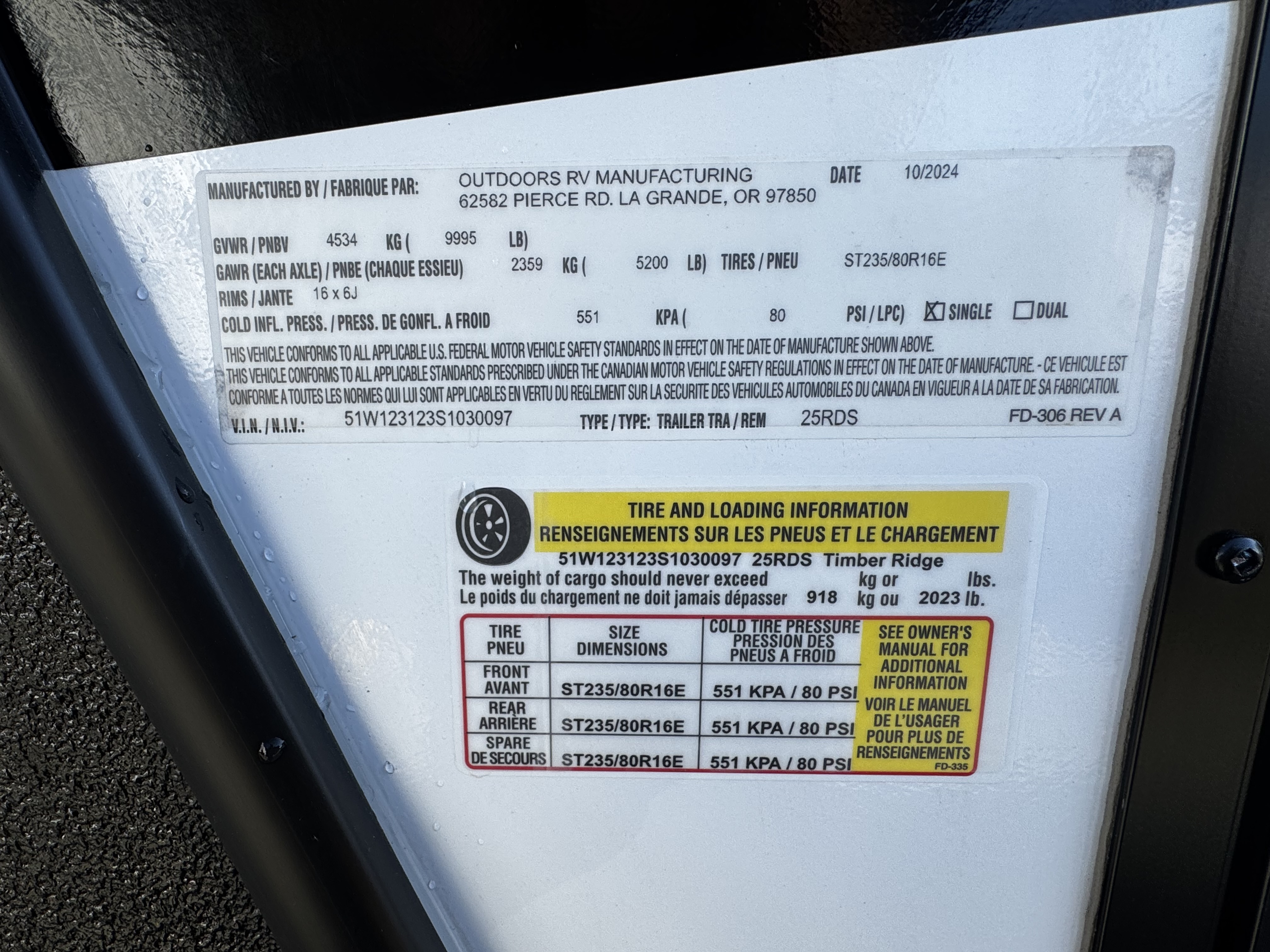 2025 Outdoors RV Mountain Timber Ridge 25RDS - 23992