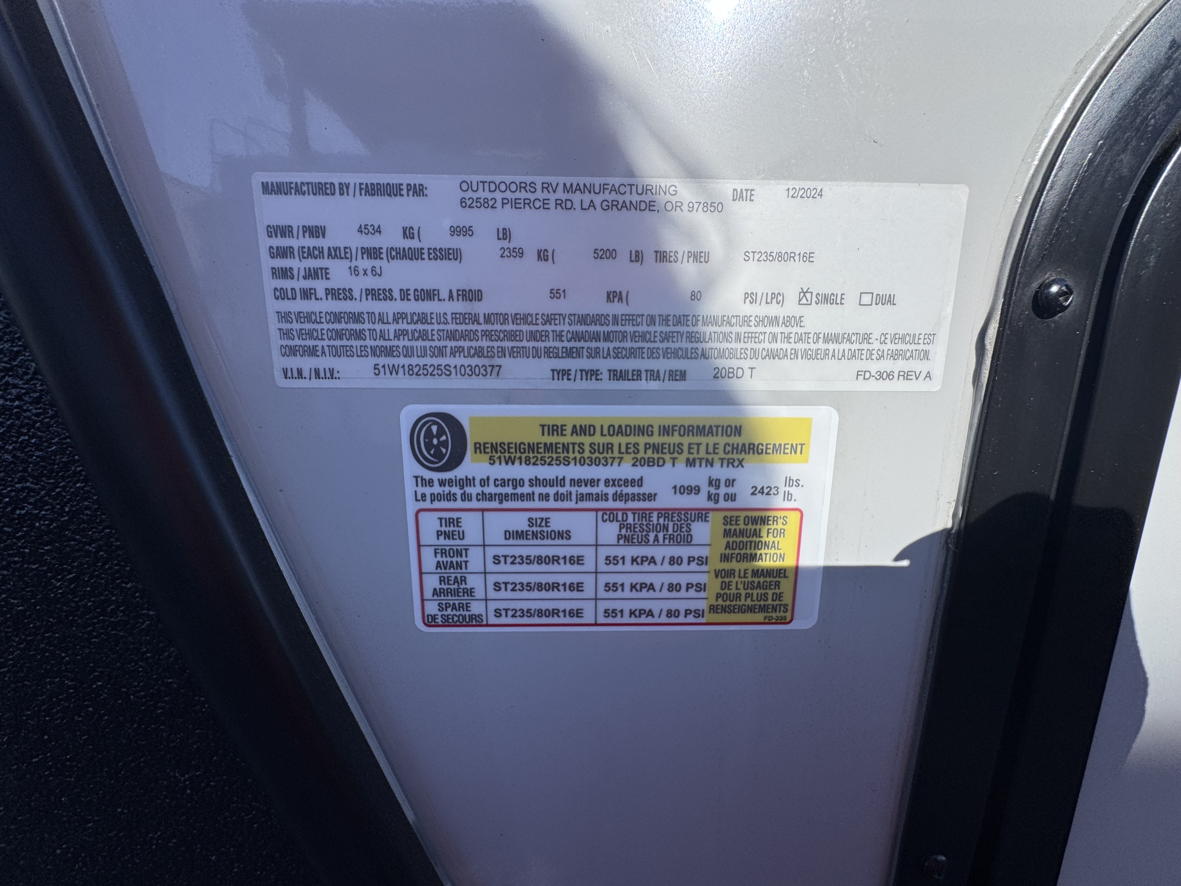 2025 Outdoors RV Titanium Back Country 20BD - 24064