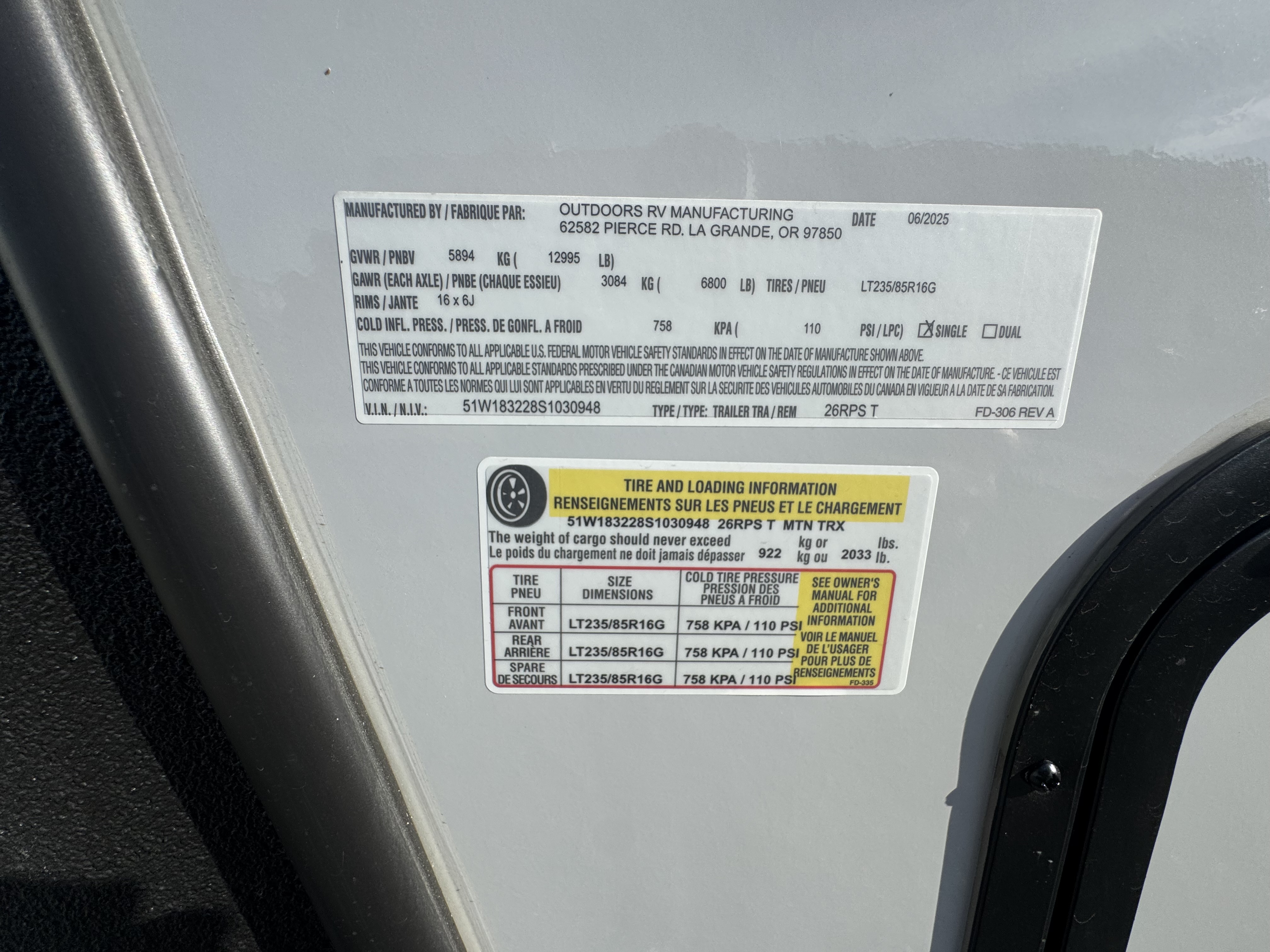 2025 Outdoors RV Titanium Back Country 26RPS - 24126