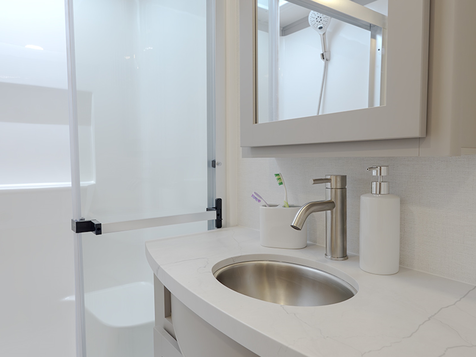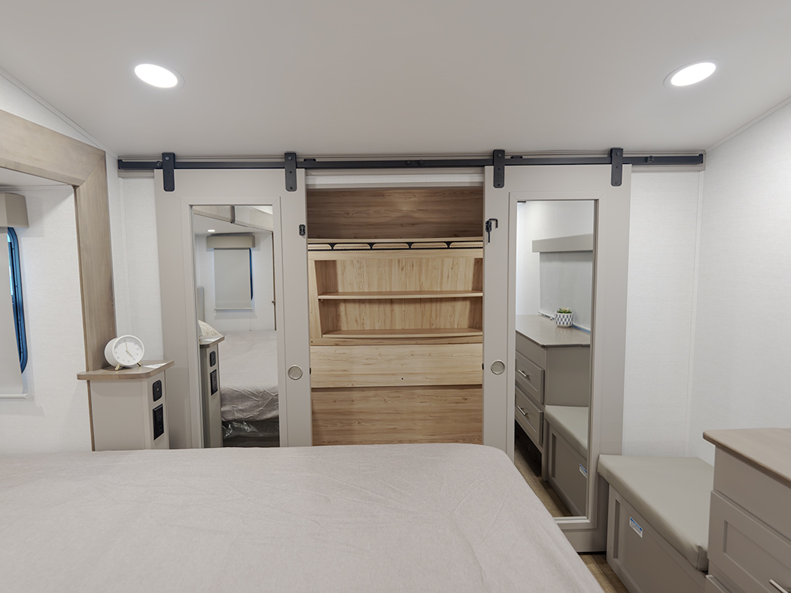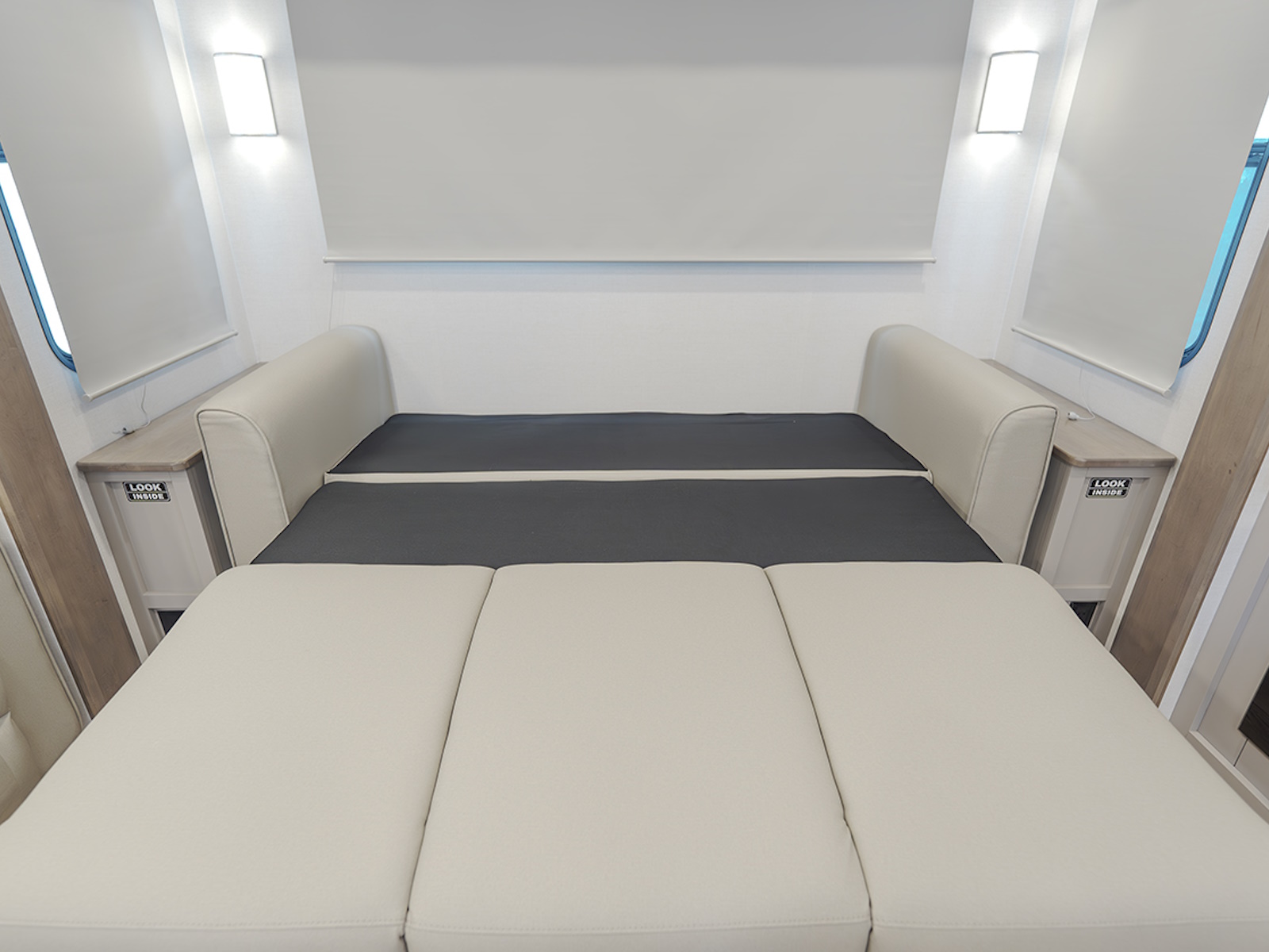 - Queen bed slide in the private front bedroom, with an option to upgrade to a king bed.