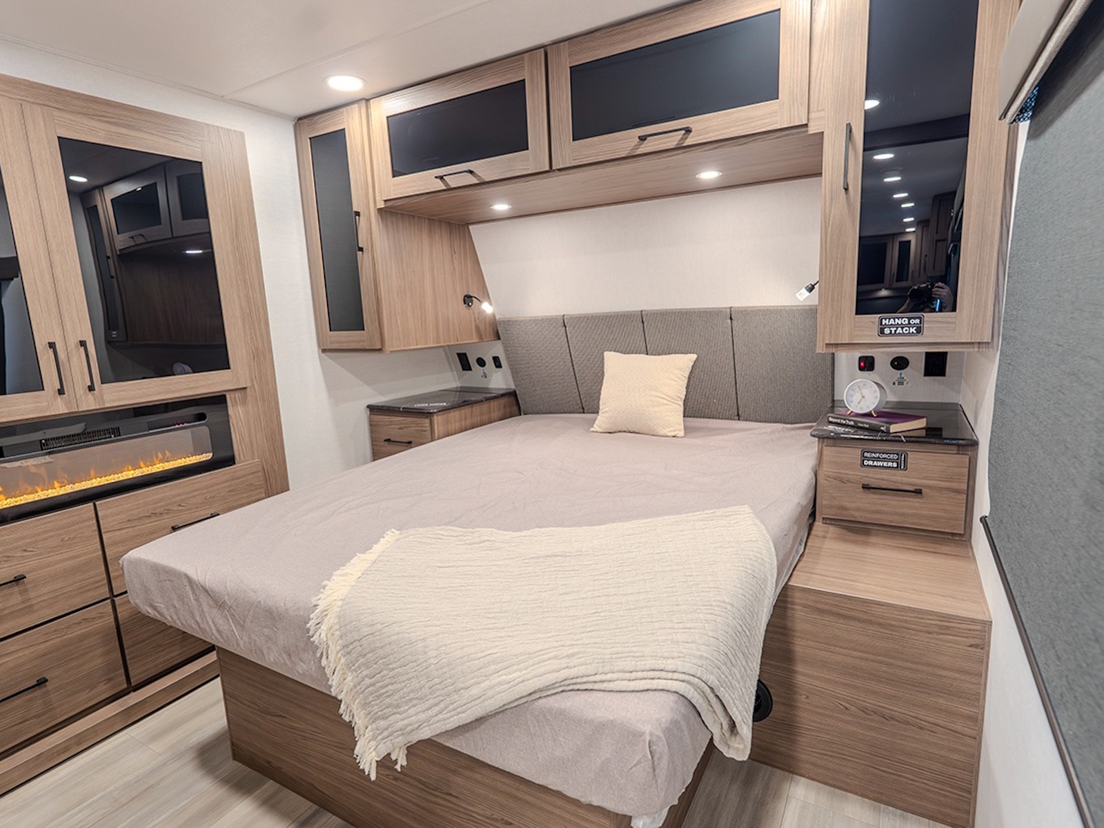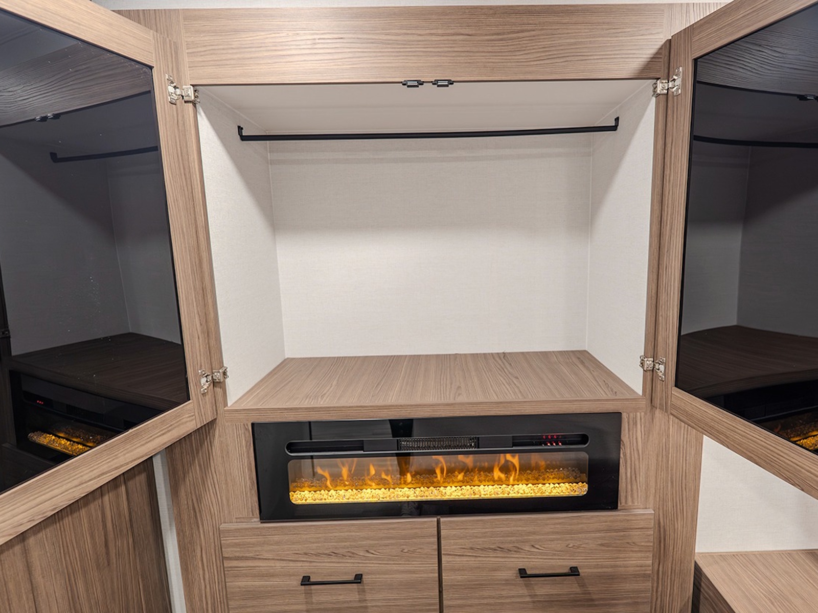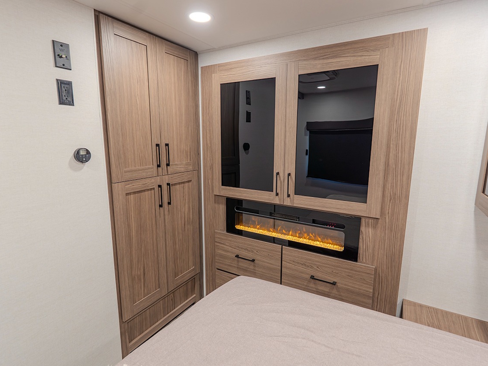 - Private Bedroom Retreat – 60” x 80” queen bed, a wardrobe fireplace, and washer/dryer prep for extended stays.