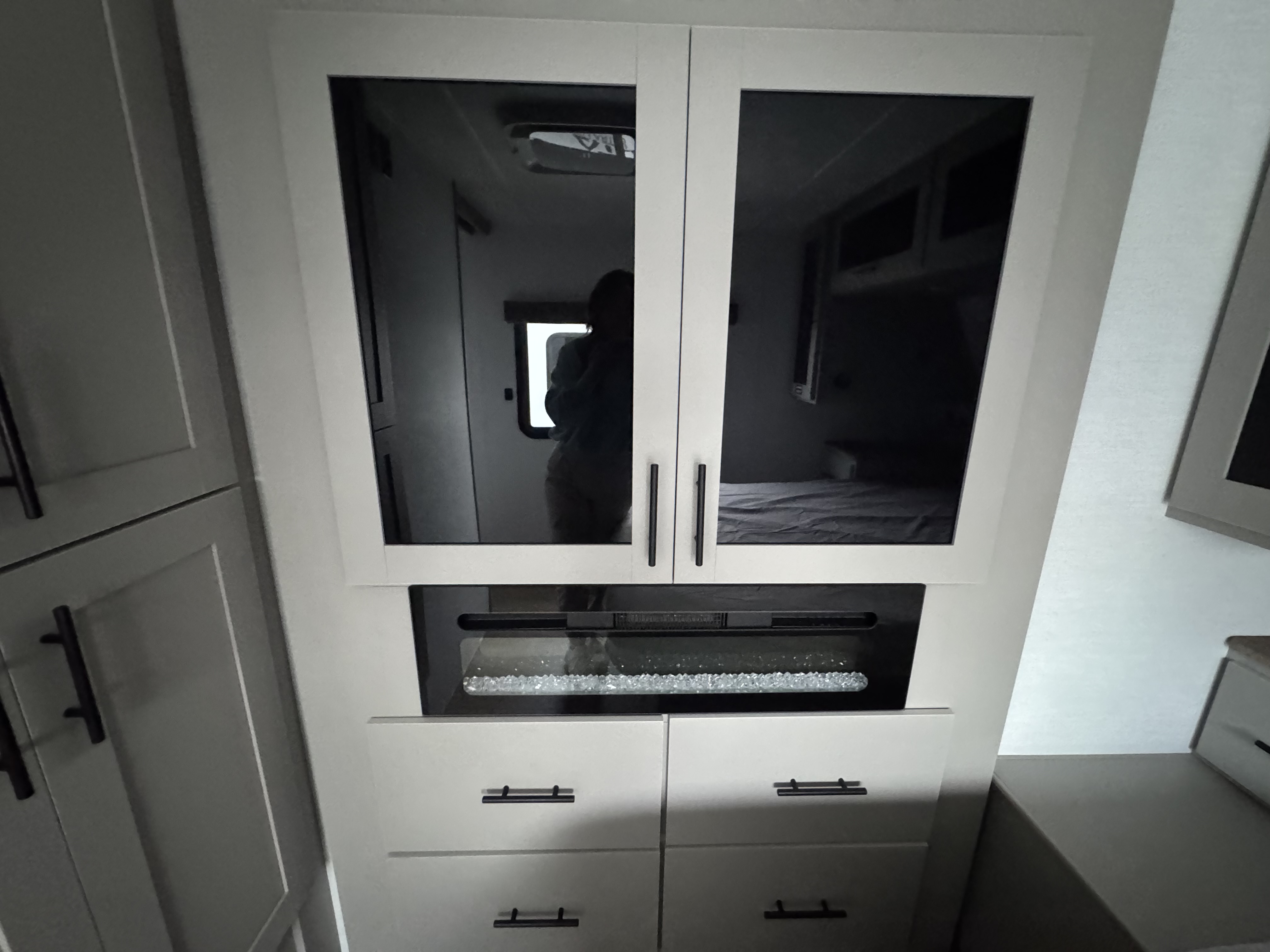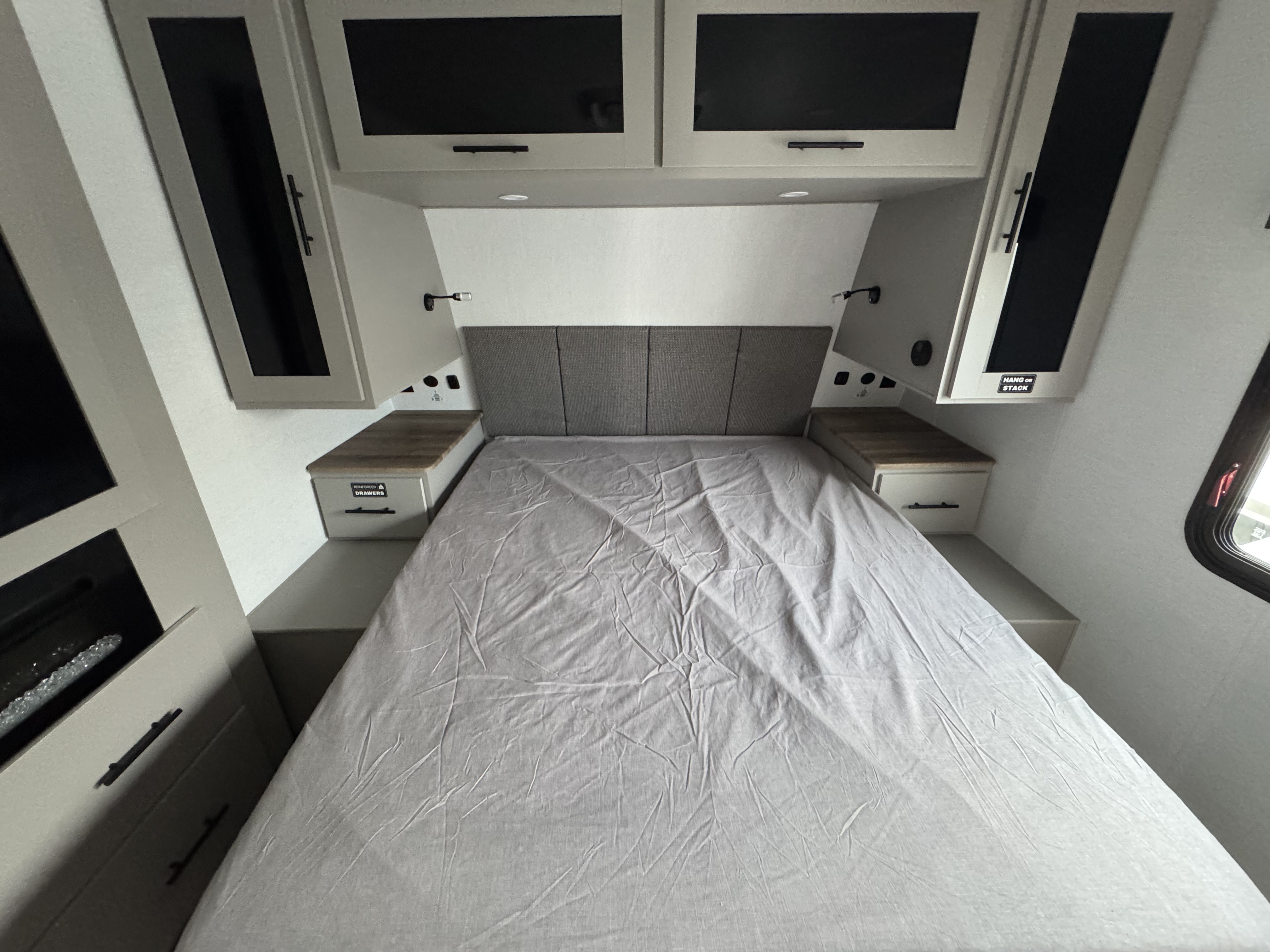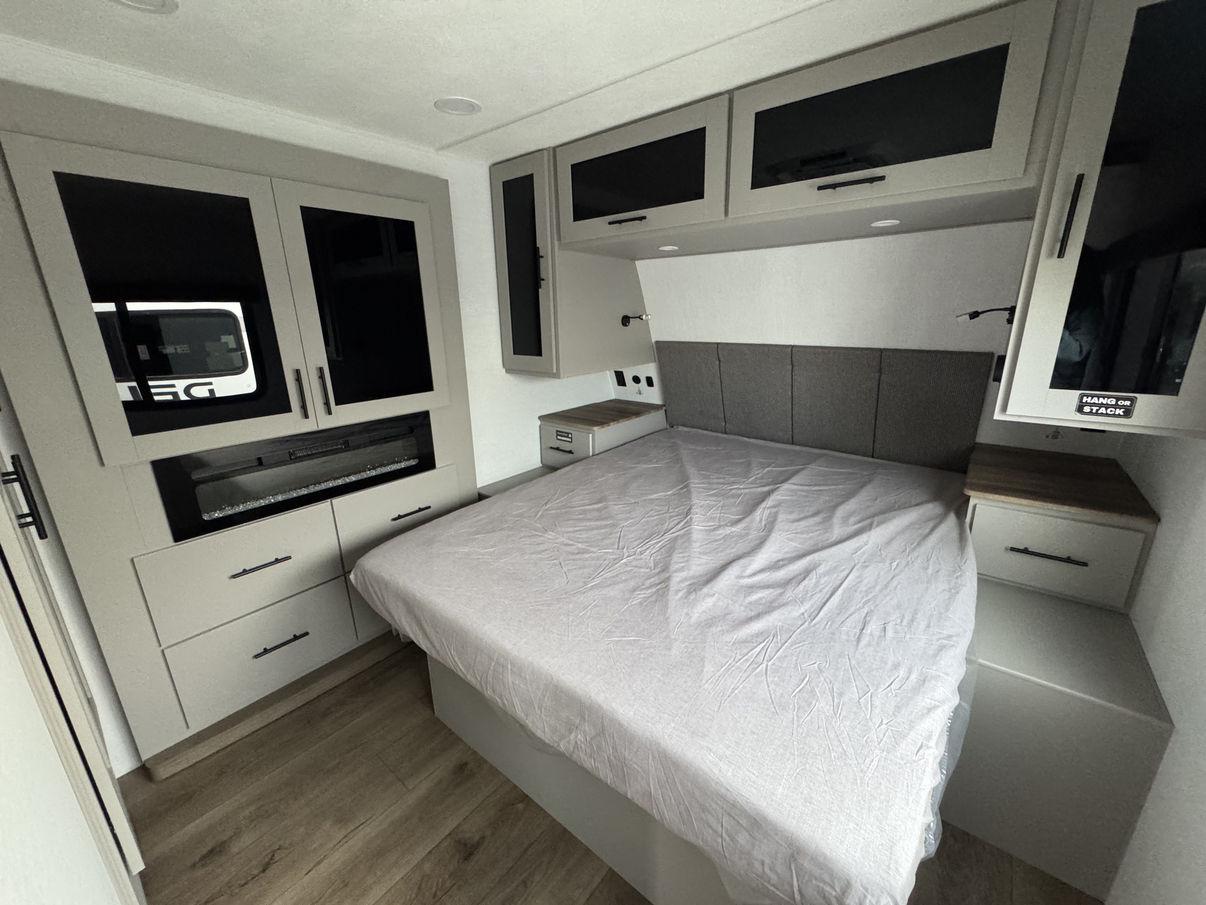 - Private Bedroom Retreat – 60” x 80” queen bed, a wardrobe fireplace, and washer/dryer prep for extended stays.