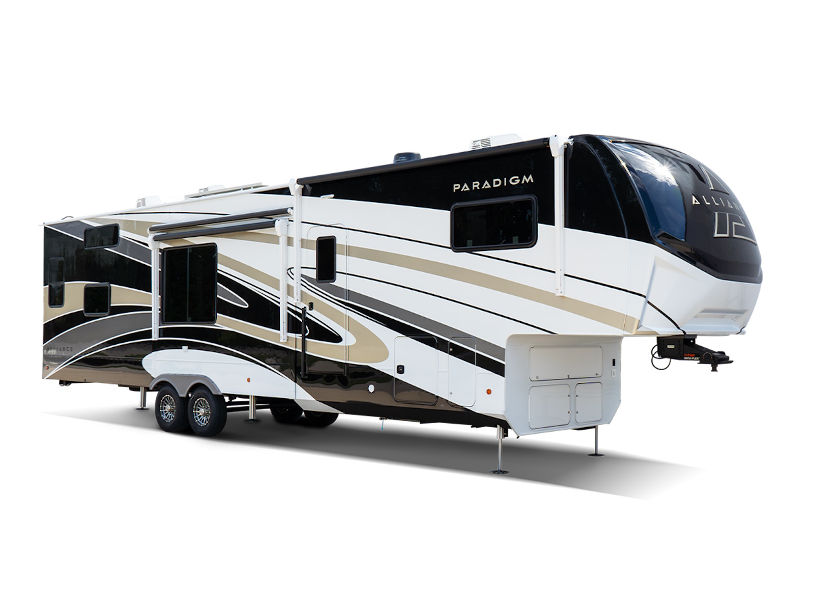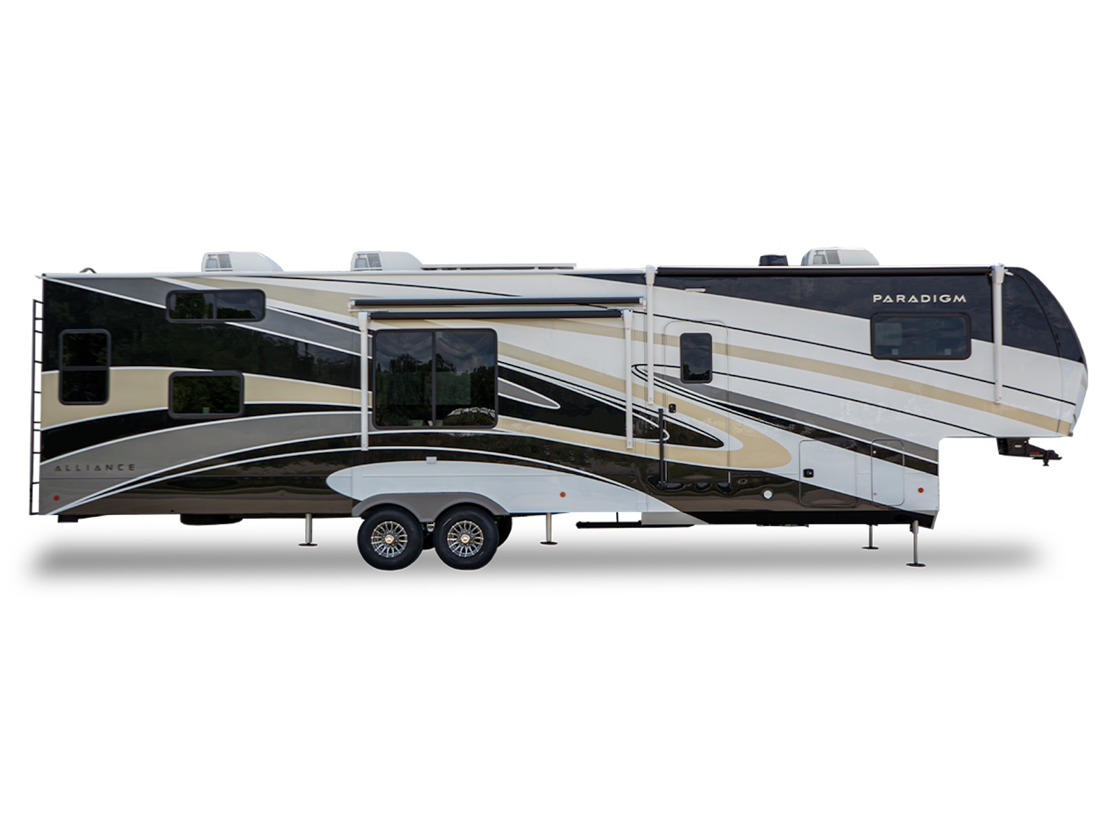 The Alliance RV Paradigm 385FL offers the perfect blend of space, comfort, and luxury, ideal for families, adventurers, or those looking for a full-time RV. Outdoor enthusiasts will appreciate the 48" x 115" exterior basement pull-out tray, perfect for storing kayaks, gear, or extra supplies, making it an excellent choice for active families.