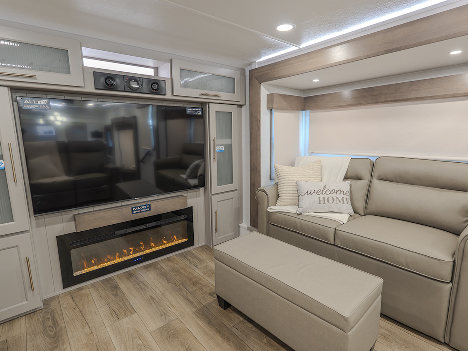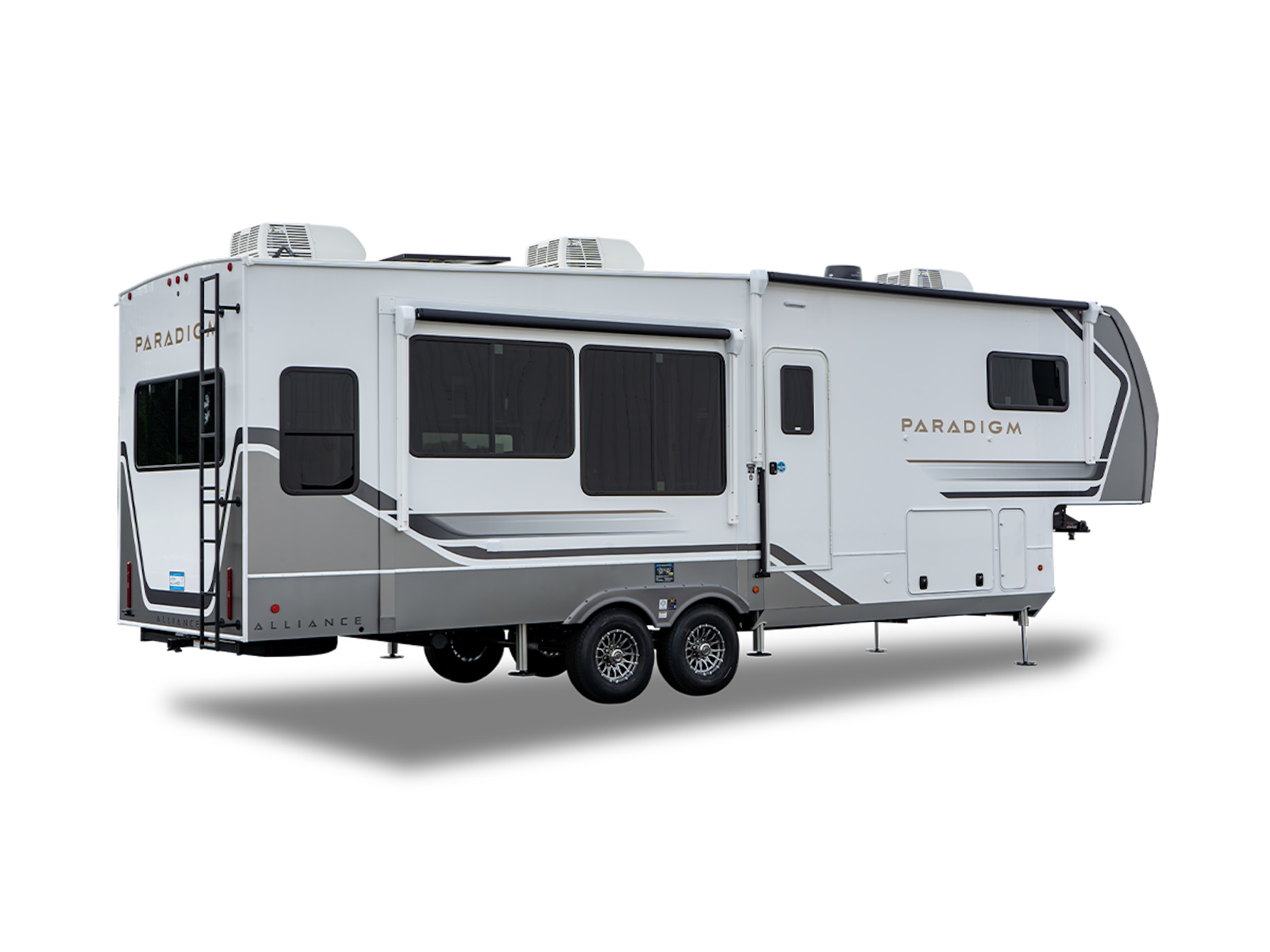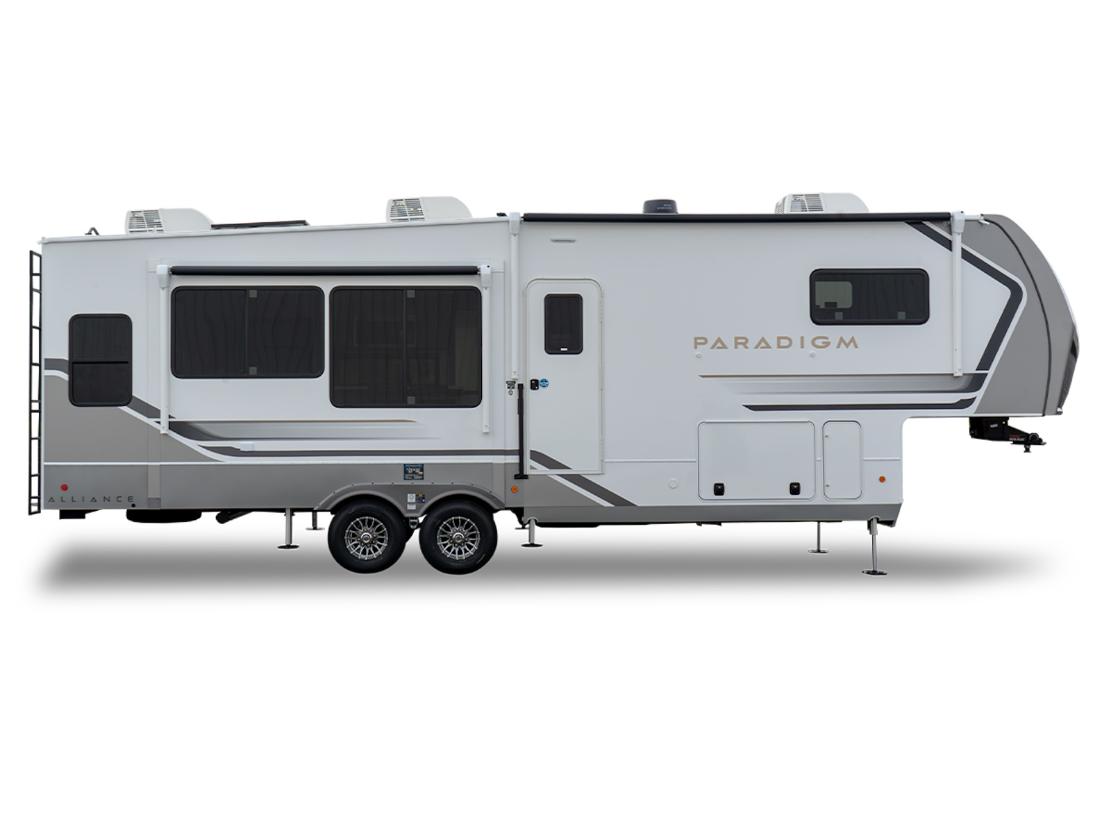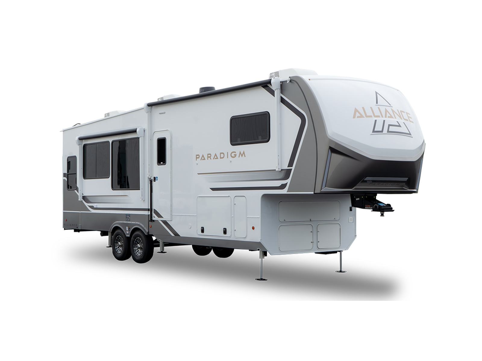 The Alliance RV Paradigm 385FL offers the perfect blend of space, comfort, and luxury, ideal for families, adventurers, or those looking for a full-time RV. Outdoor enthusiasts will appreciate the 48" x 115" exterior basement pull-out tray, perfect for storing kayaks, gear, or extra supplies, making it an excellent choice for active families.