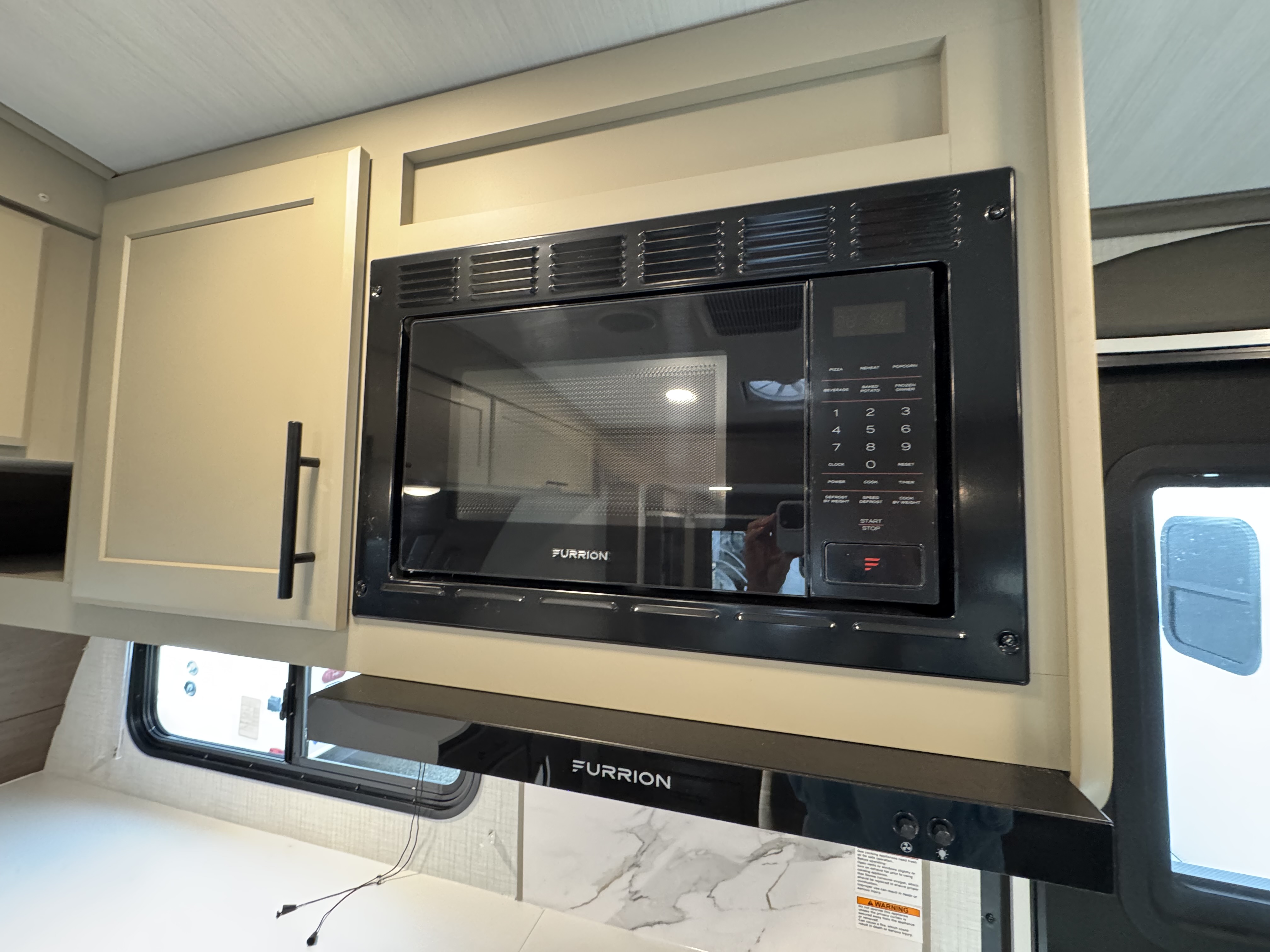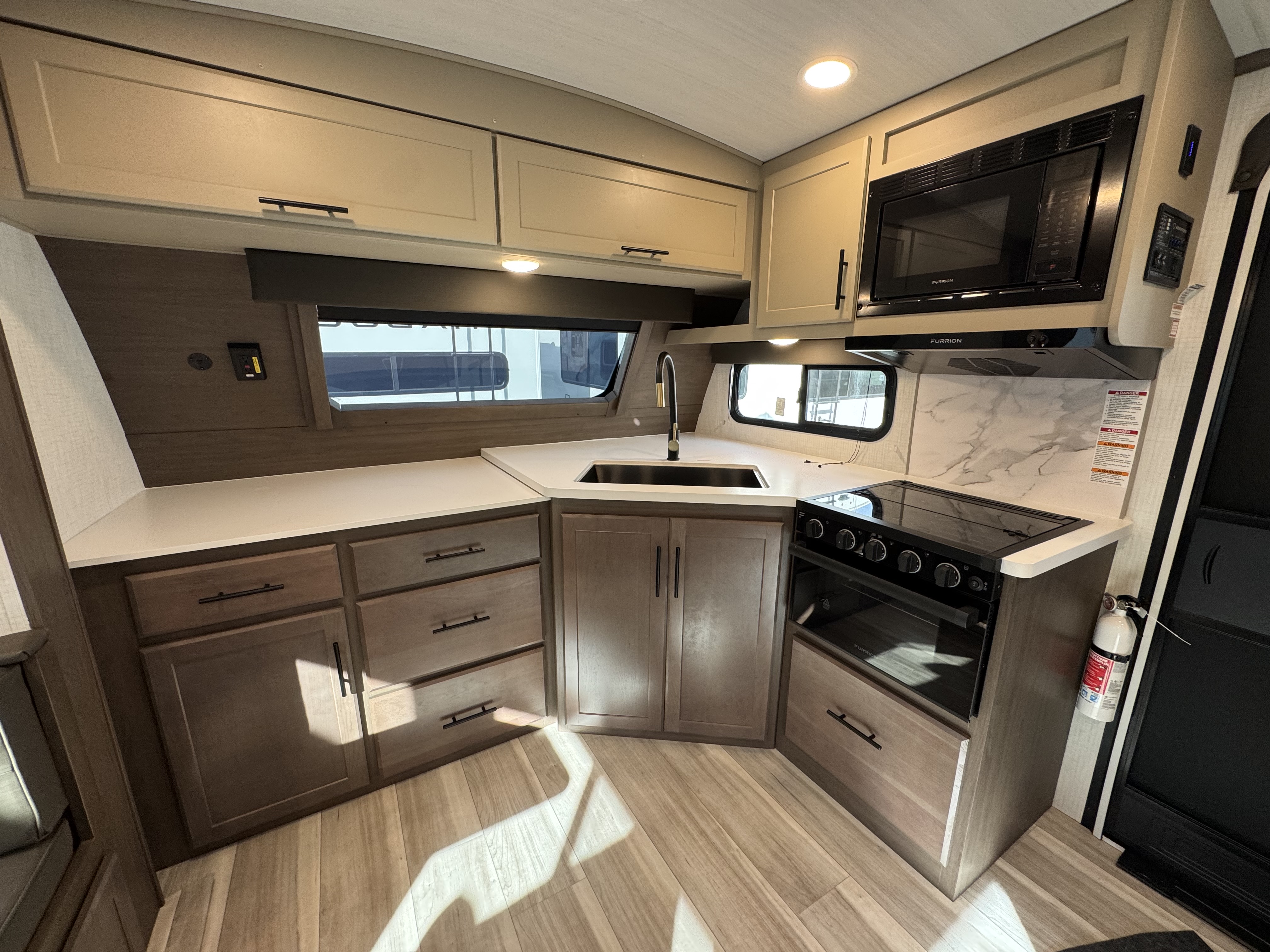 - 17" Furrion® range w/ Piezo ignition and glass stovetop cover